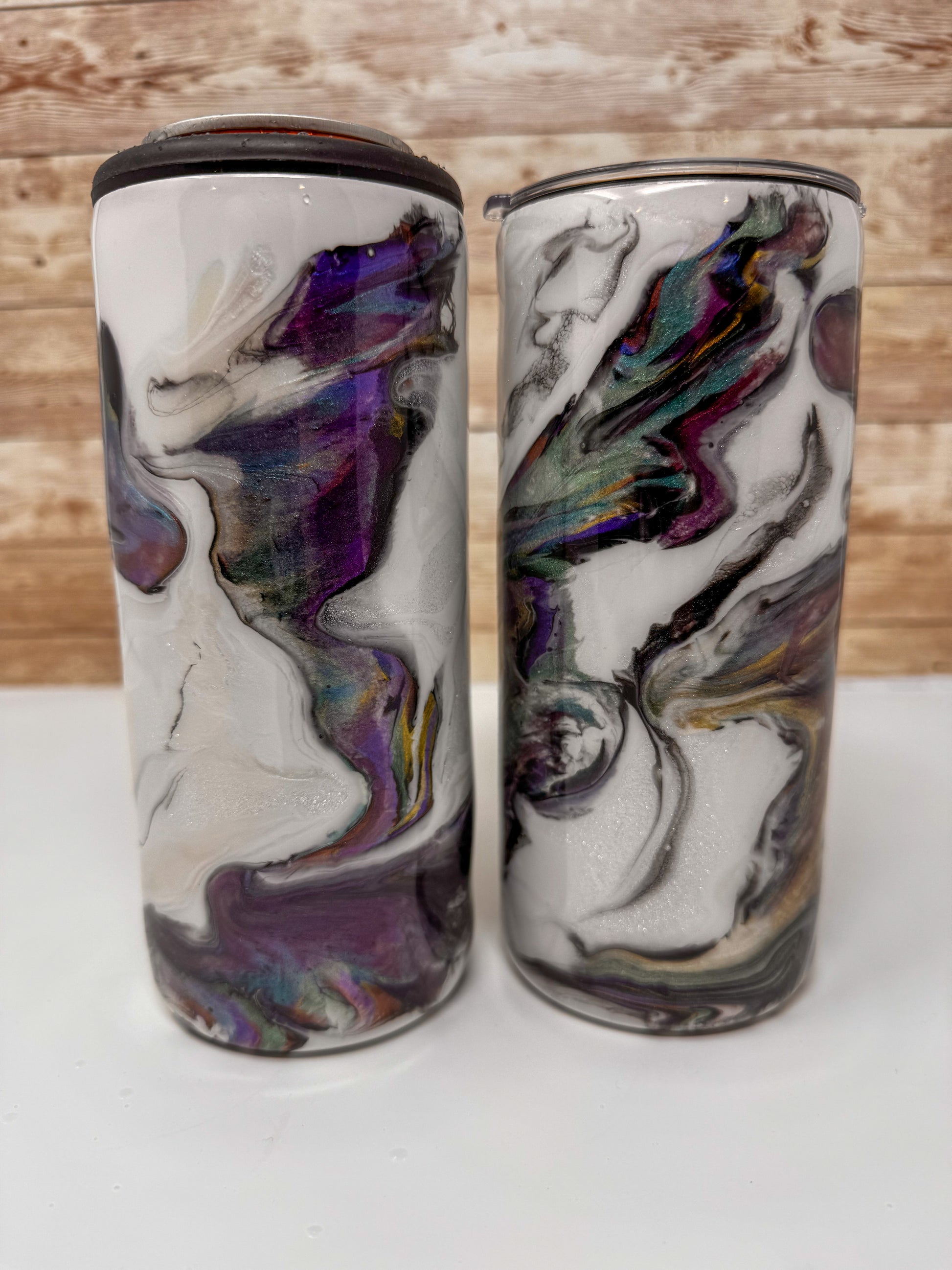 Abalone Mica Marble Cup & Skinny Can Koozie (12 oz) - Double Wall Steel (B)