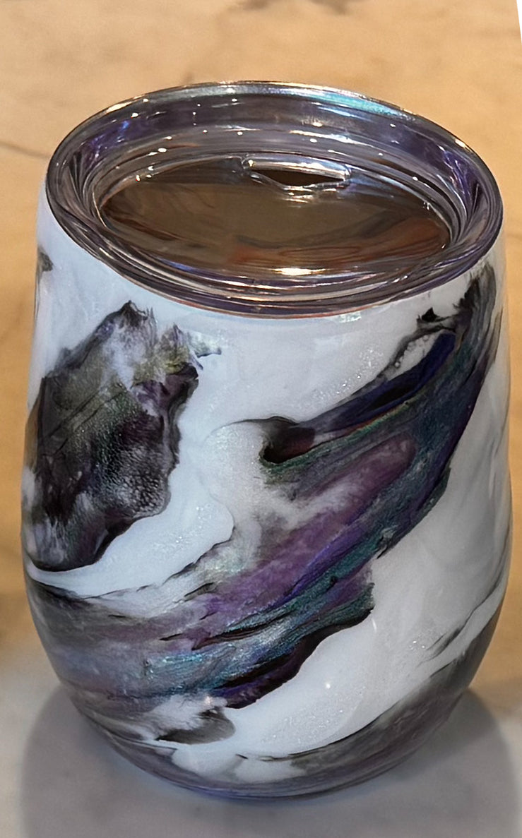 12 oz Stainless Steel Stemless Wine Glass with decorated epoxy coating.