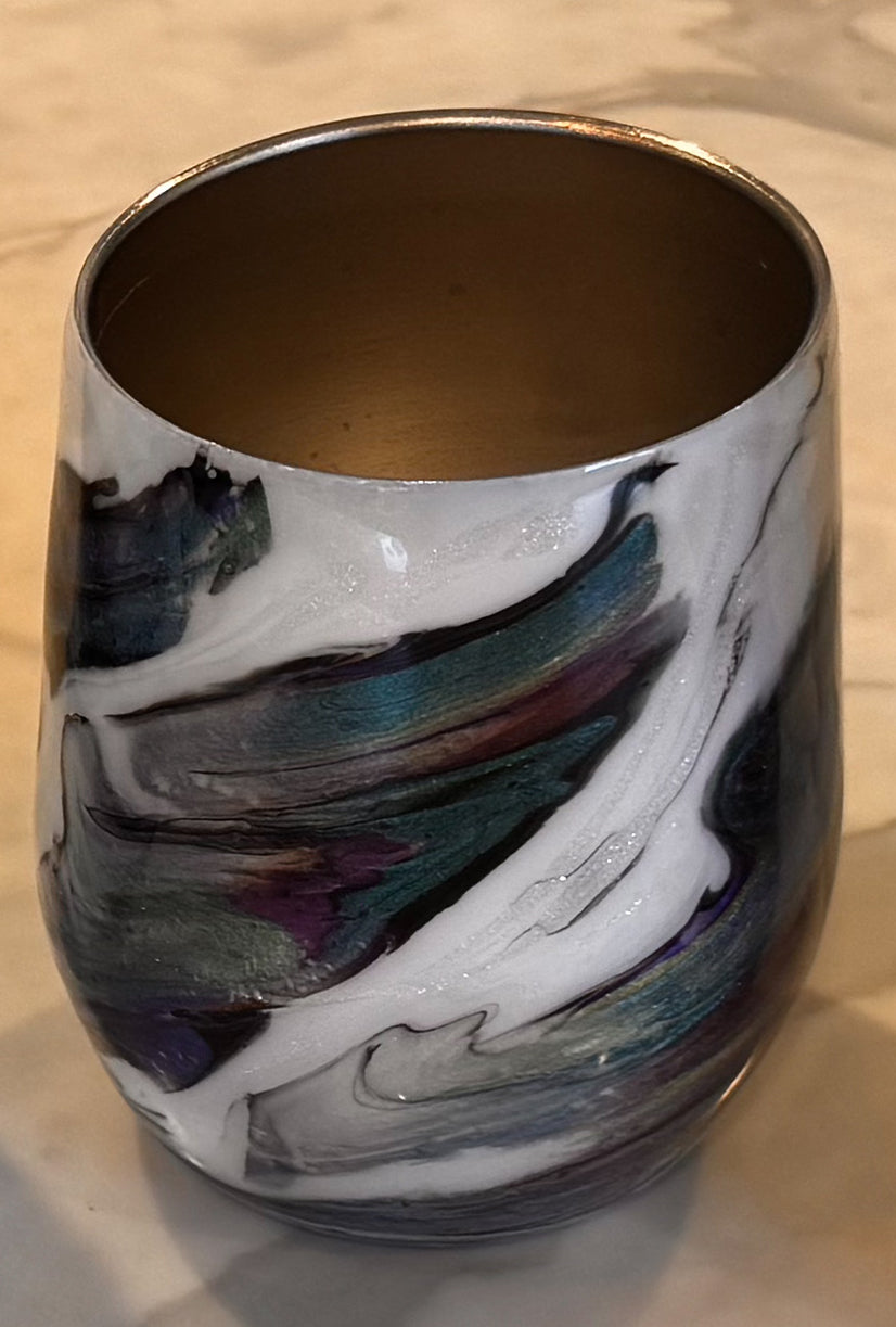 12 oz Stainless Steel Stemless Wine Glass with decorated epoxy coating.