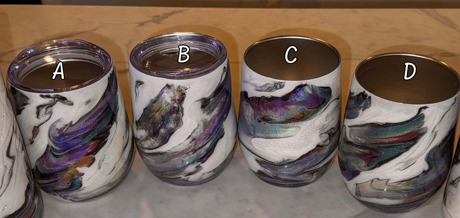 All cups are handmade and sealed with an FDA compliant protective epoxy coating. Since the tumblers are hand made no two will be exactly alike and there will be slight variations. Please remember that slight imperfections must be expected when purchasing a handmade item. But please note I take ever effort to make every cup beautiful, as I want you to be able to enjoy your product as much as I would.
