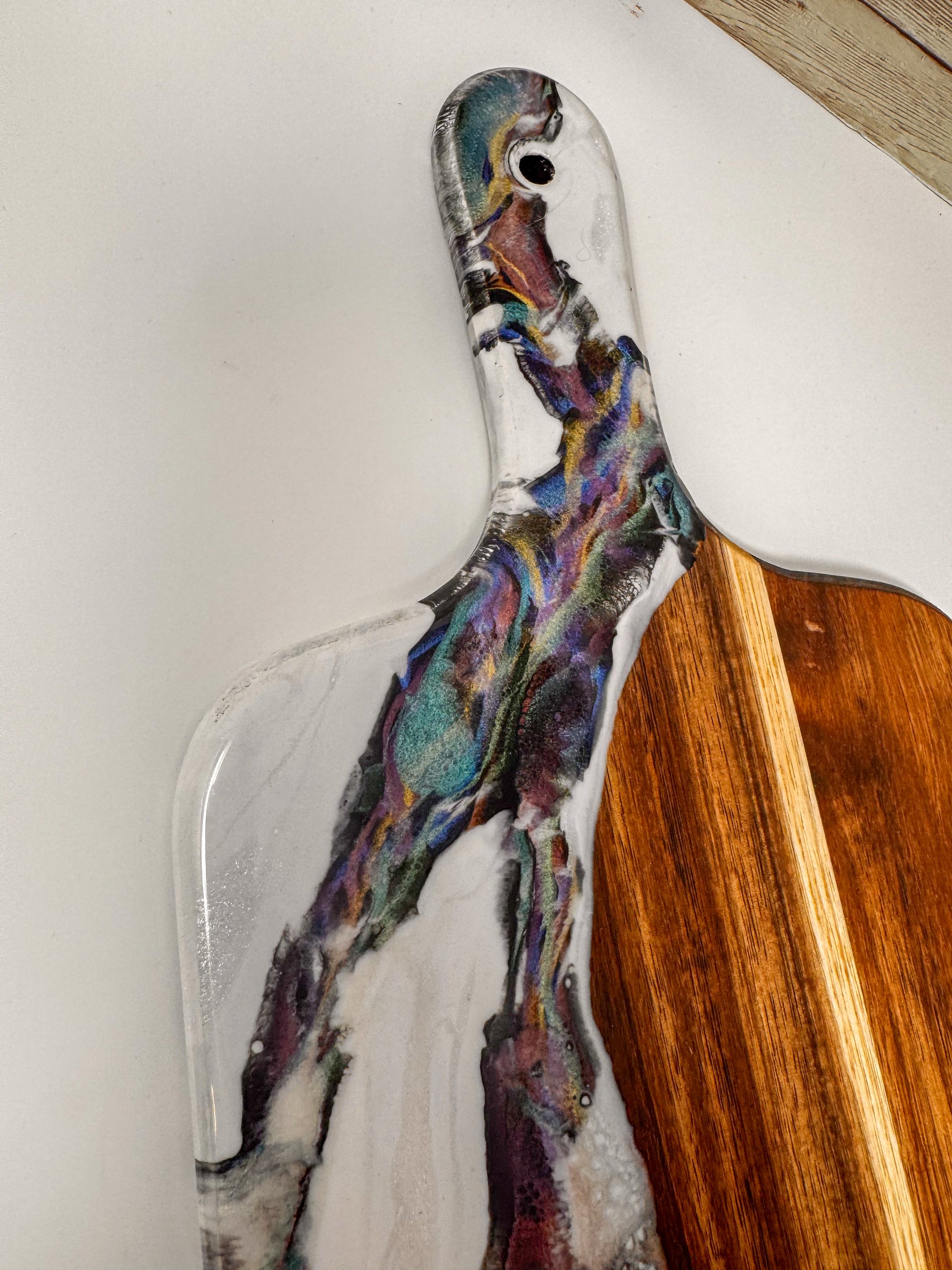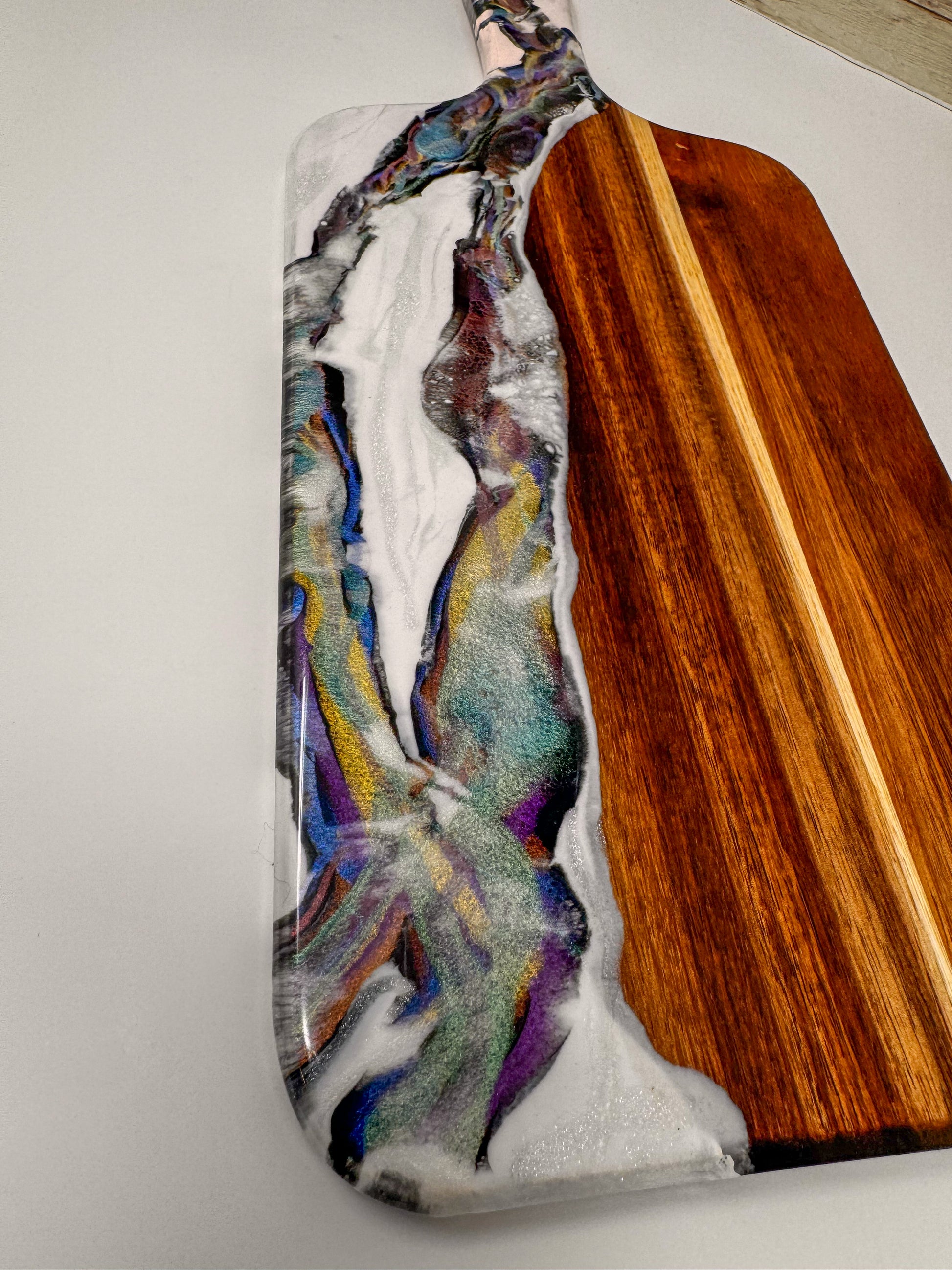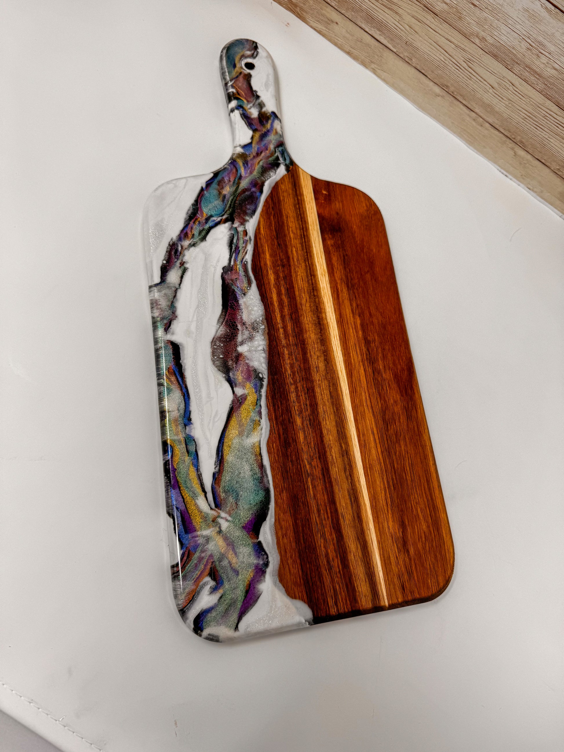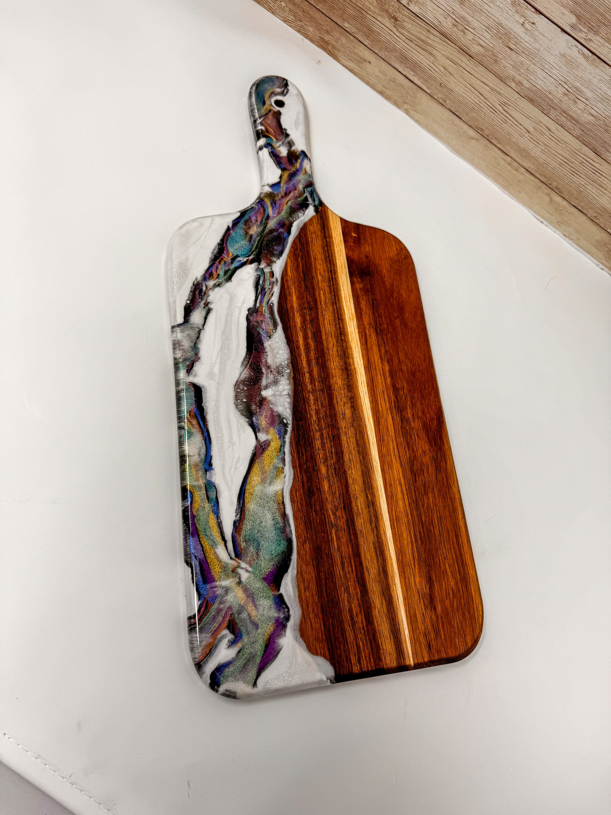 Acacia wood charcuterie board, with epoxy decoration.