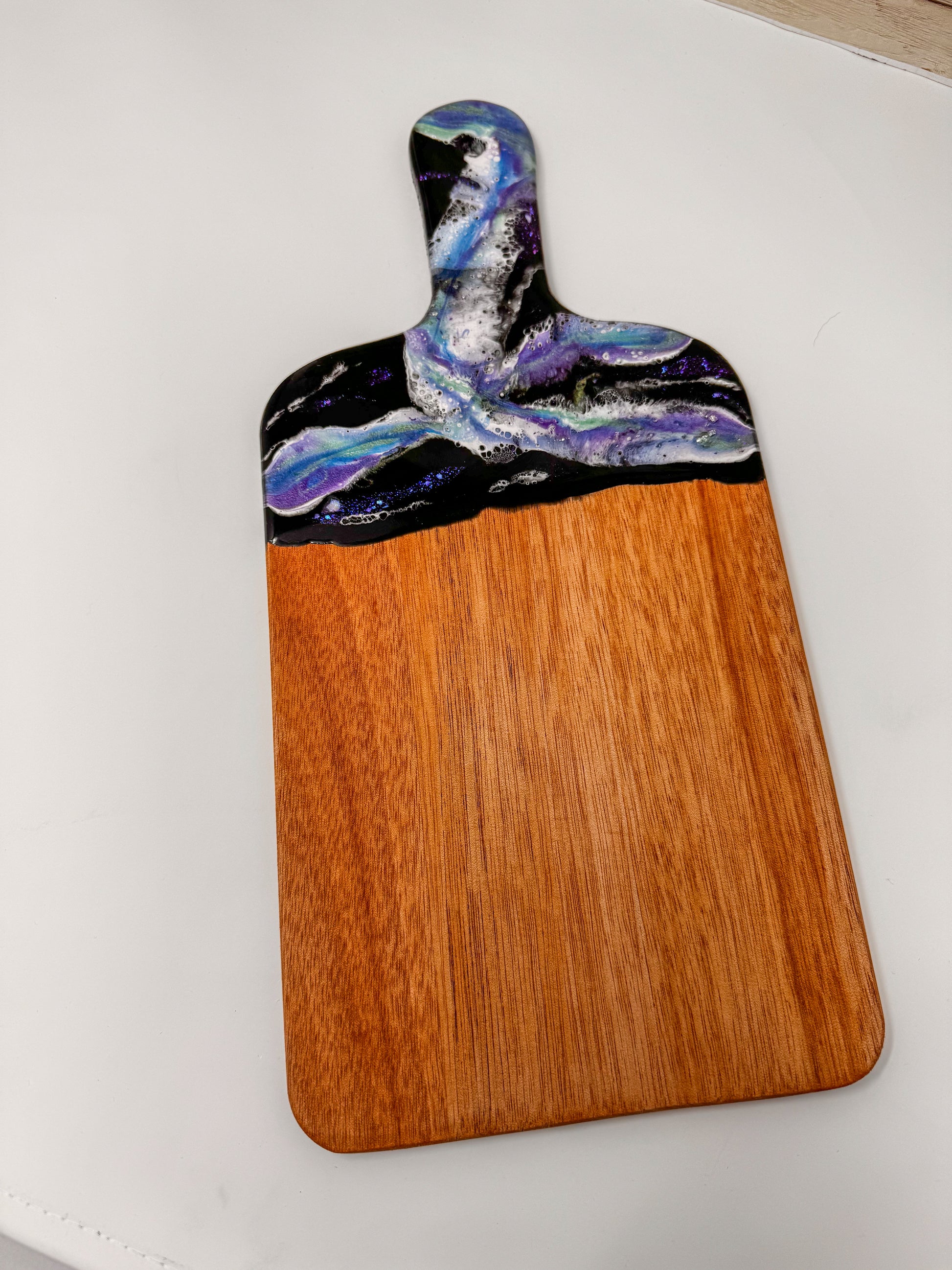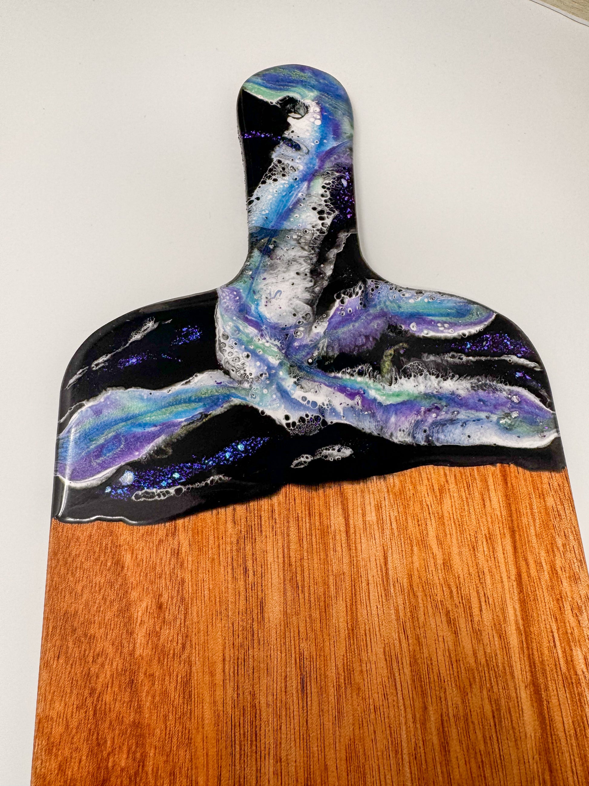 Black with Blue/Purple/Green Mica Marble Charcuterie Board - 15x7 (0.3" Thick) (E)