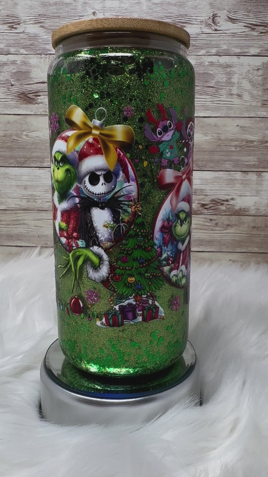Grinch and Skelly - Snow Globe Cup - 16 oz Glass