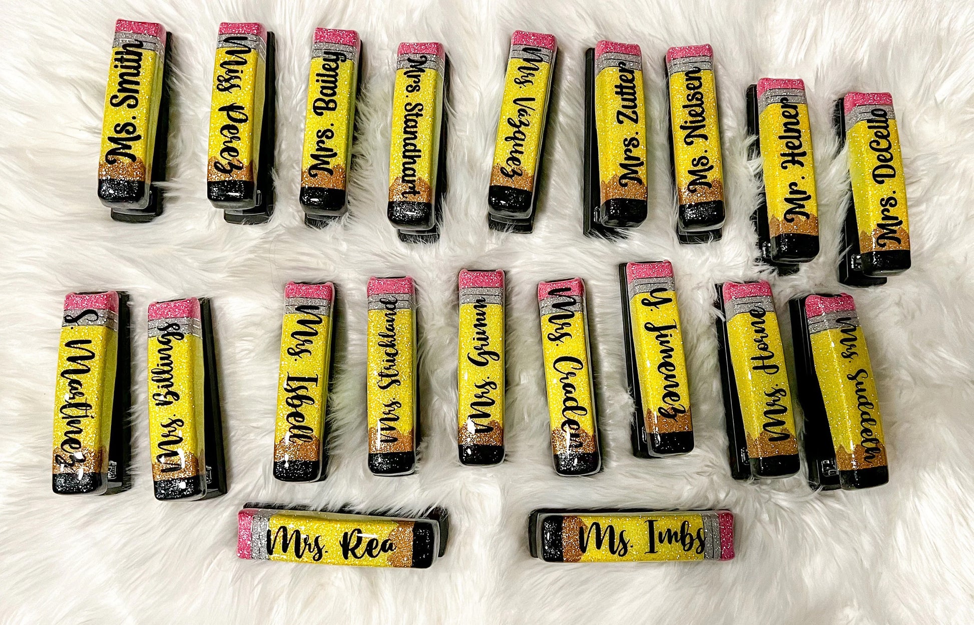 ALL staplers are handmade and can be customized with names, other colors, or glitters.