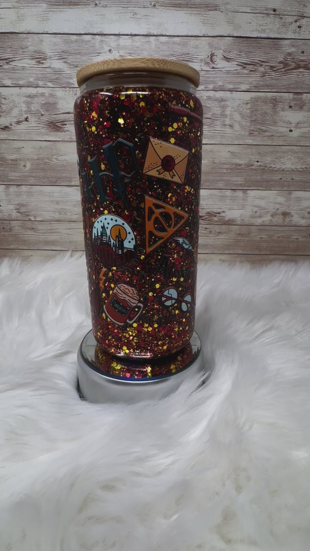 Wizard Kids - Red/Yellow Glitter - Snow Globe Cup - 16 oz Glass