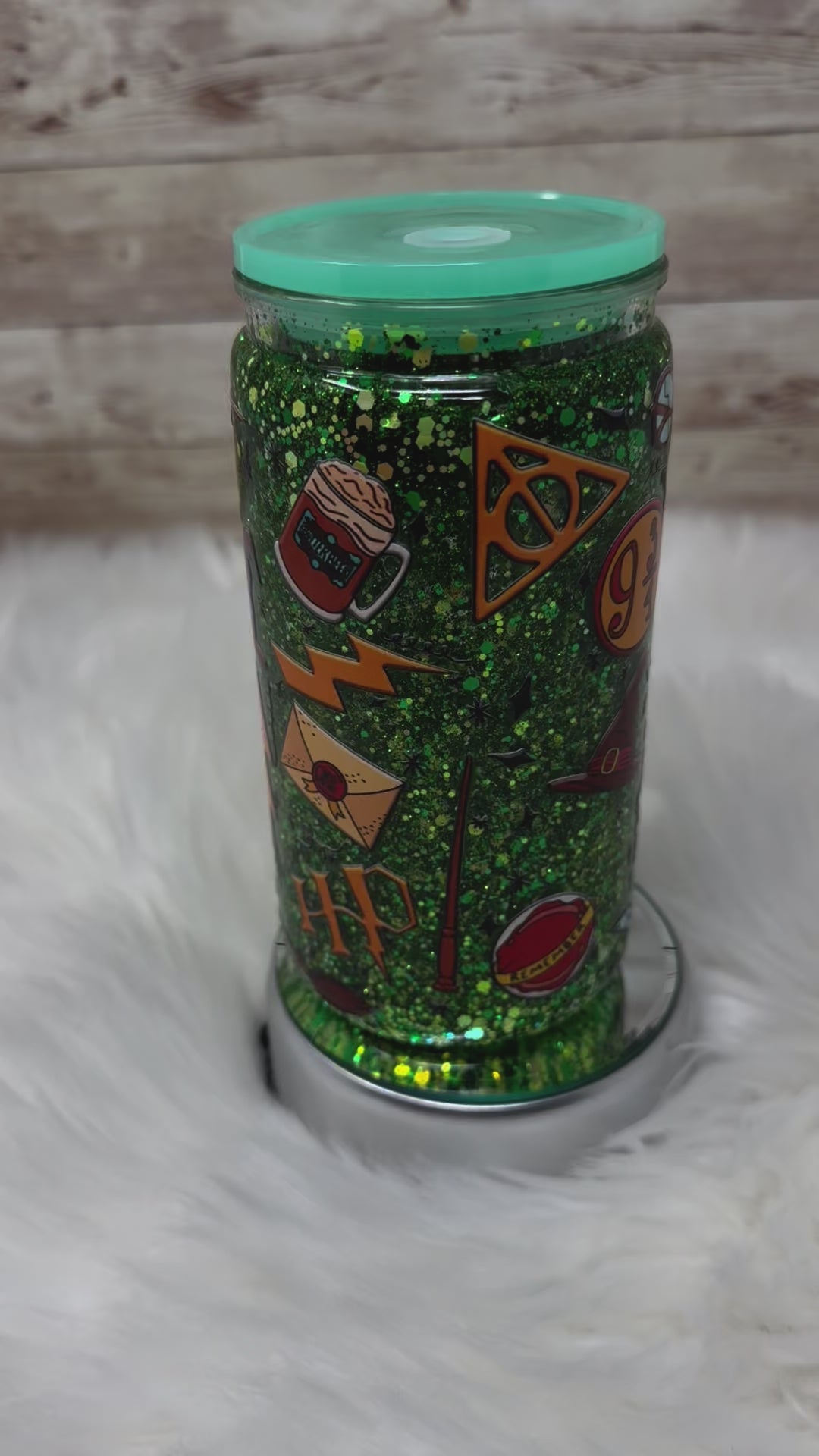 Wizarding World - Green/Yellow Glitter - Snow Globe Cup - 12 oz Acrylic